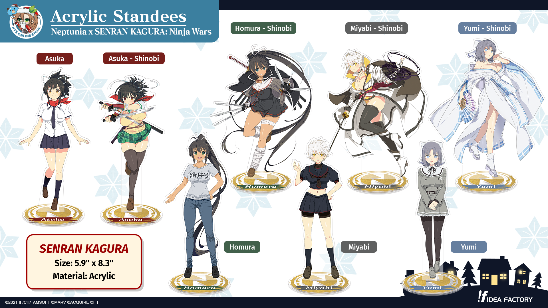 The Super NINJA War is on! Pick a side with the Neptunia x SENRAN KAGURA: Ninja Wars Acrylic Standees! Mix and match your favourite Ninjas and Shinobi.